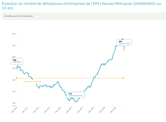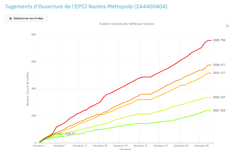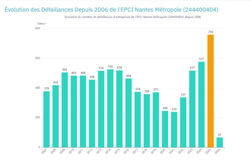 Données issues du tableau de bord FailliteTracker – Nantes Métropole (EPCI 244400404), mises à jour en continu